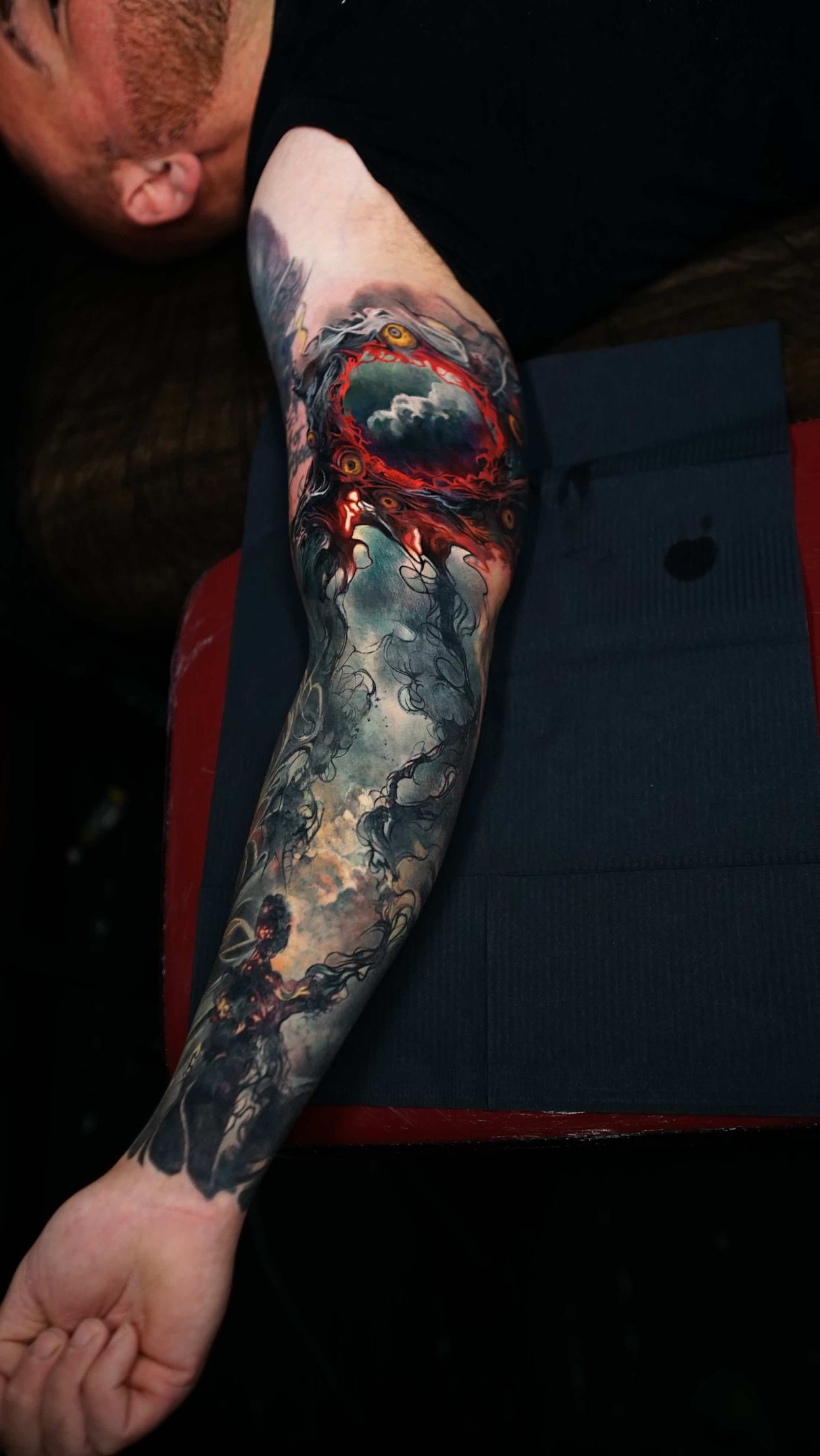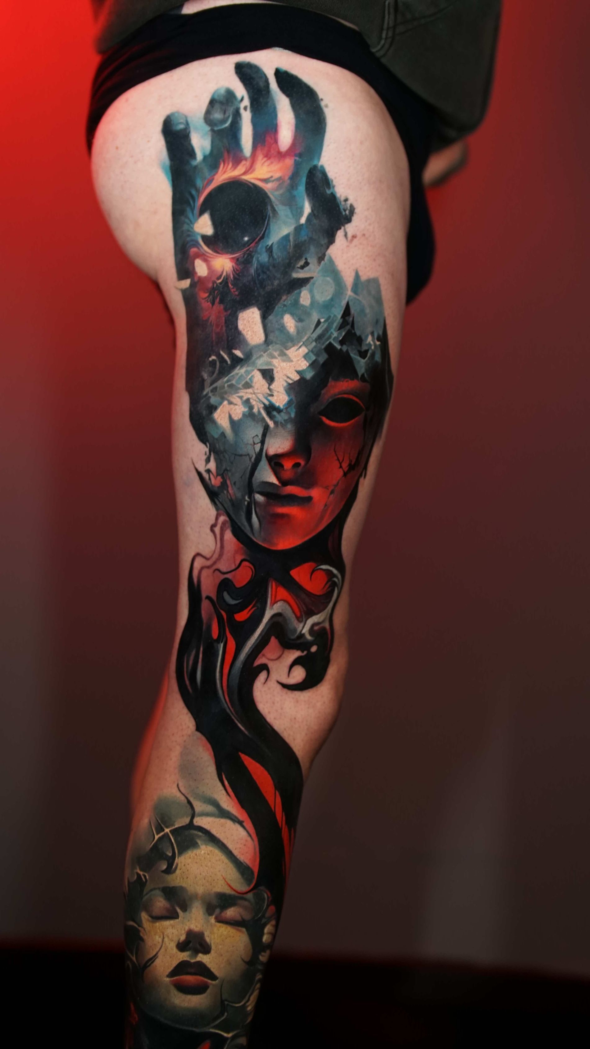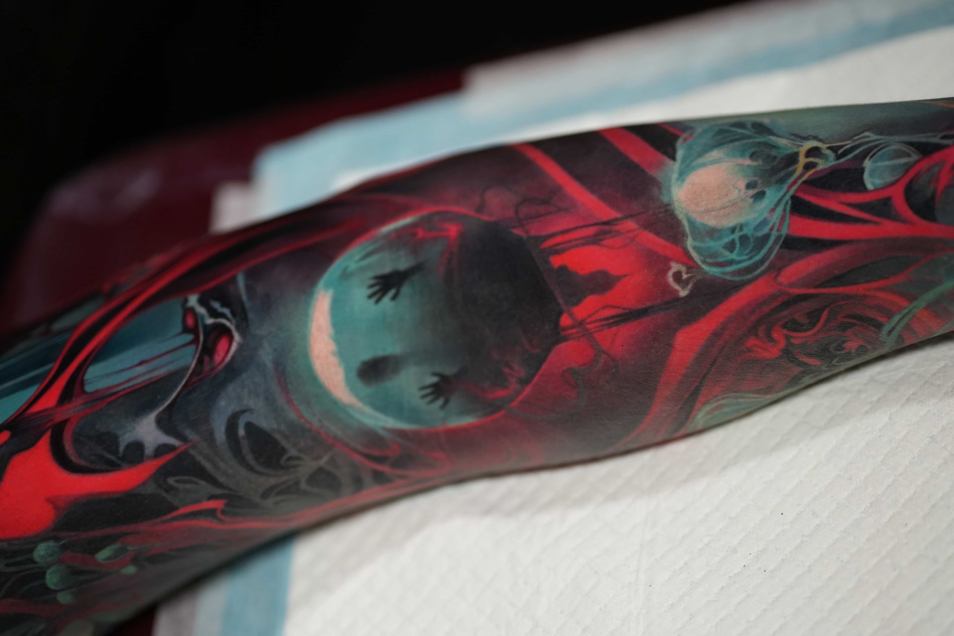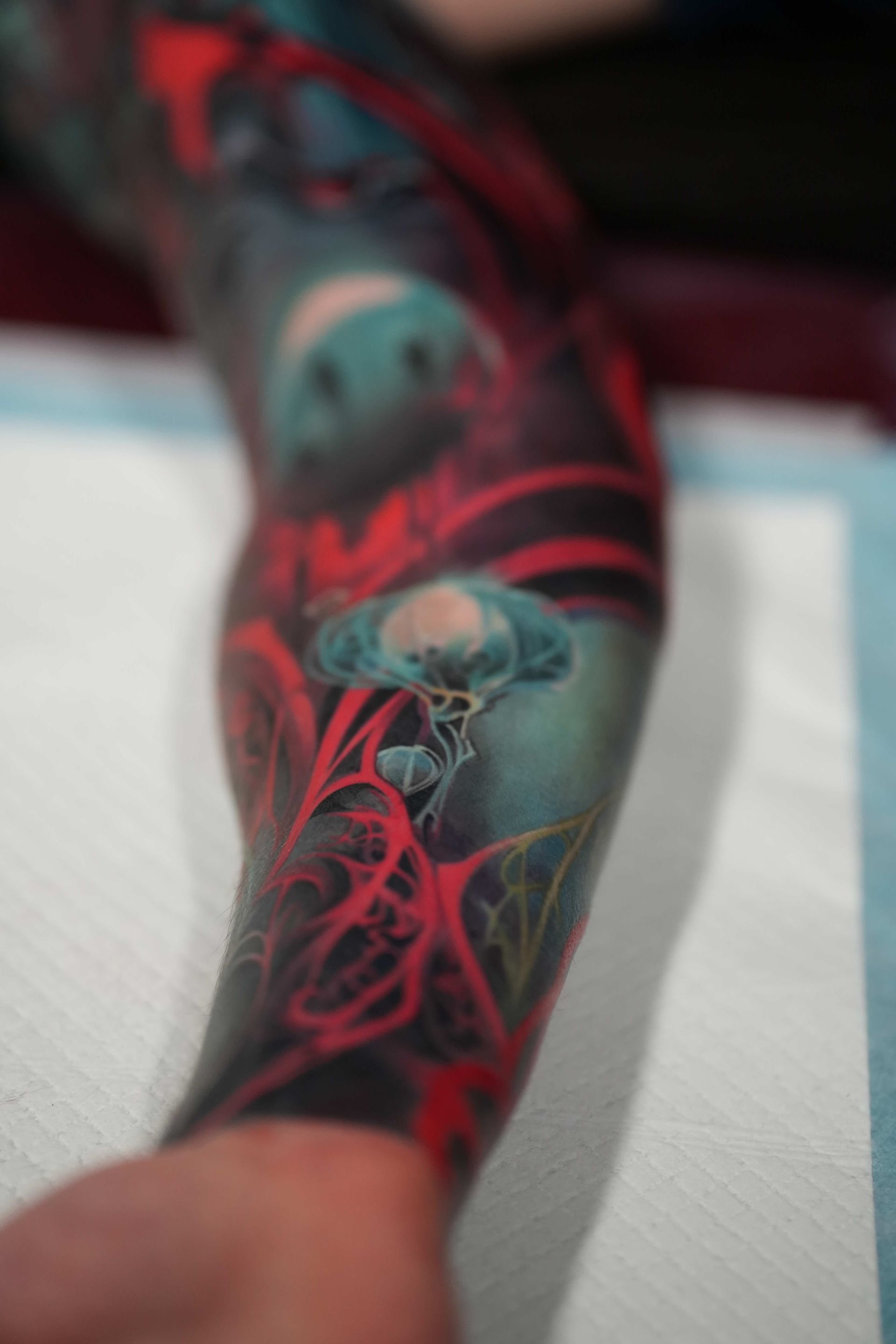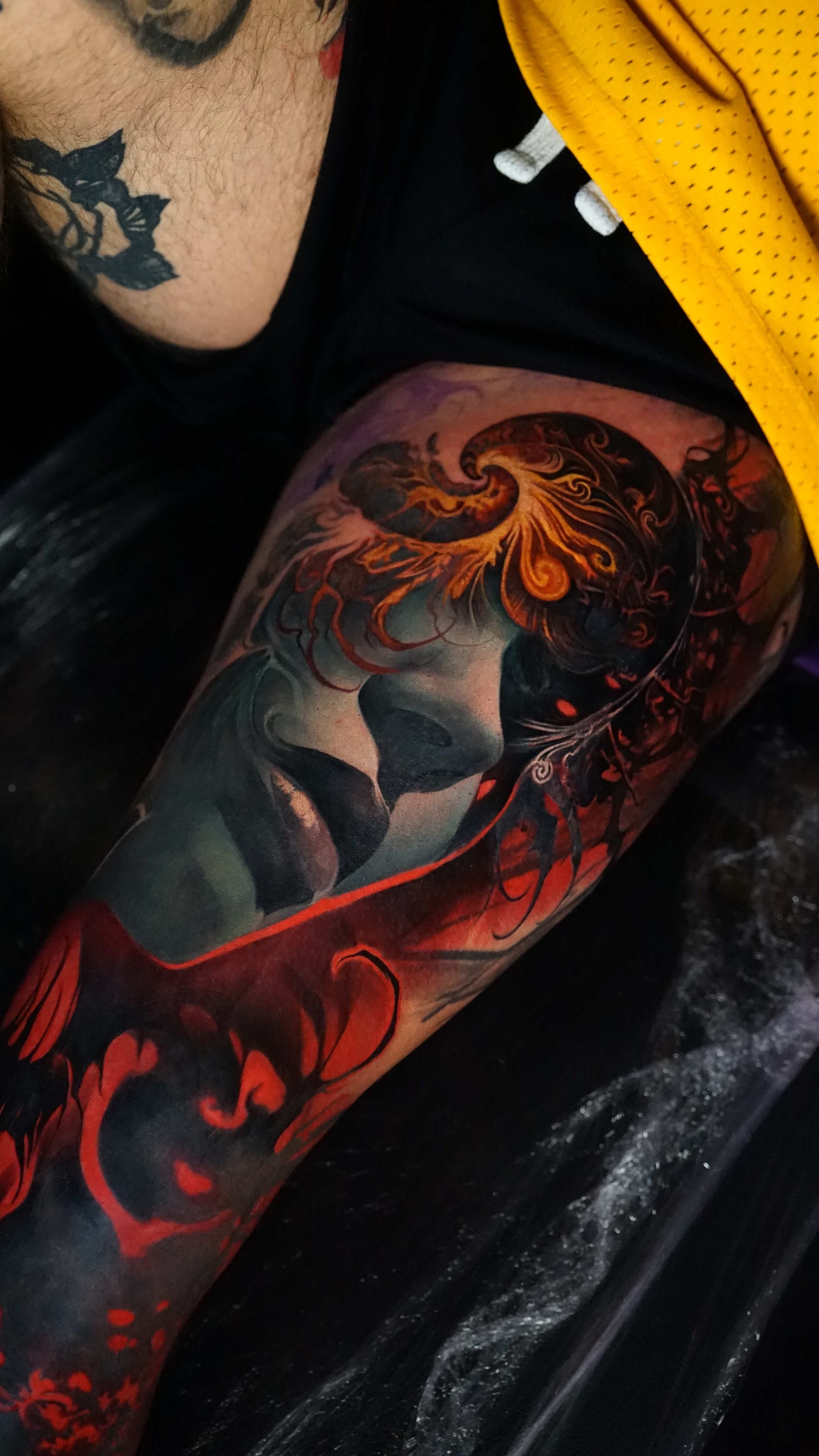 Hi, my name is Alexander Kuzmin and I am co-owner of Requiem Tattoo Shropshire. I have been tattooing for over 12 years and my speciality is my own style of surrealism. I like making art with a narrative and aim to inject a little lore into each one of my pieces. I am extremely selective of the pieces and clients I work with to ensure the best creative process and the most favourable outcome. I don't work with everyone but the people I do work with usually become lifelong friends. During your session I'm happy to chat and have a laugh or we can stay quiet and focus on our own tasks, either is fine with me as long as you're relaxed and comfortable.