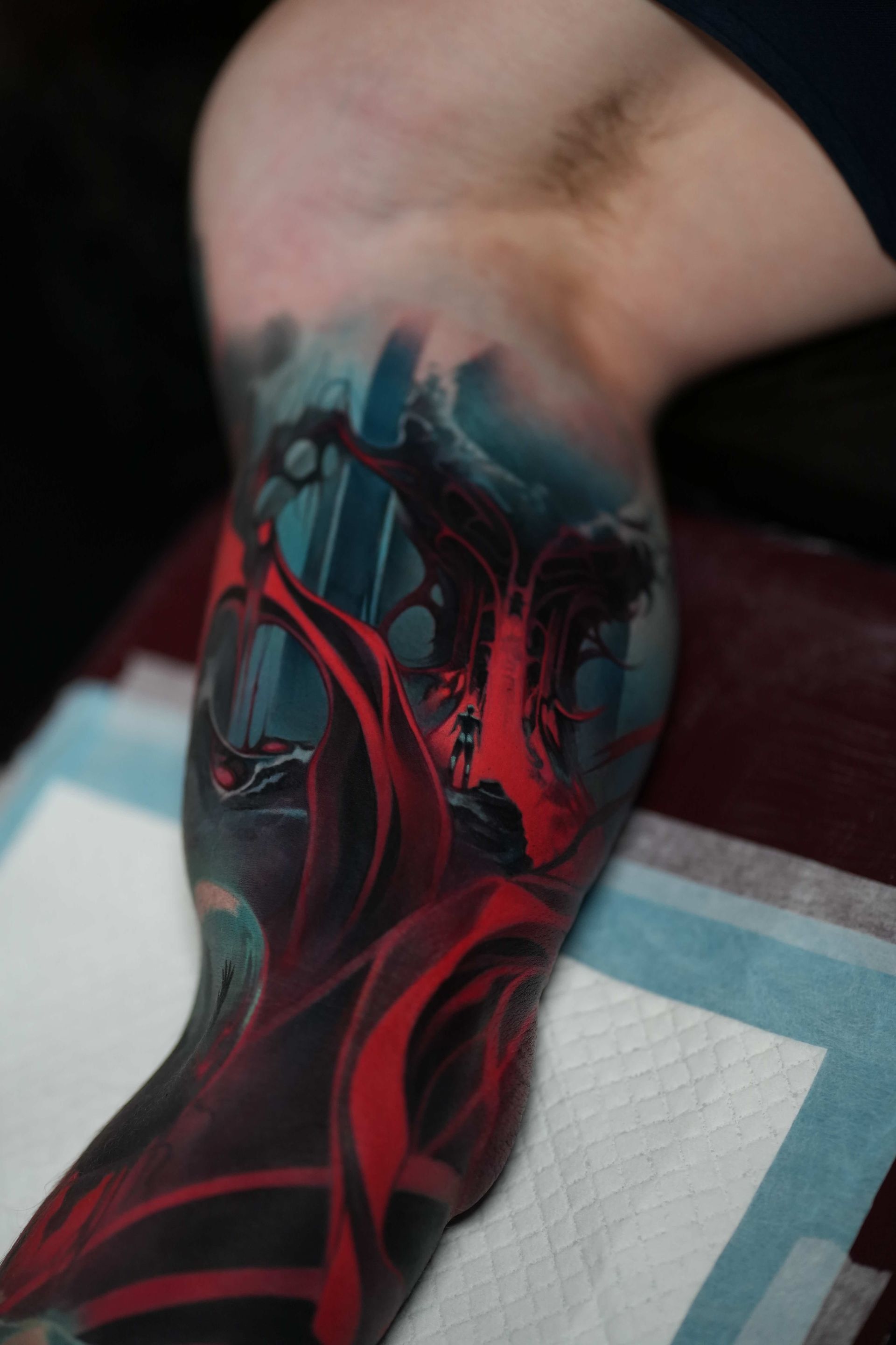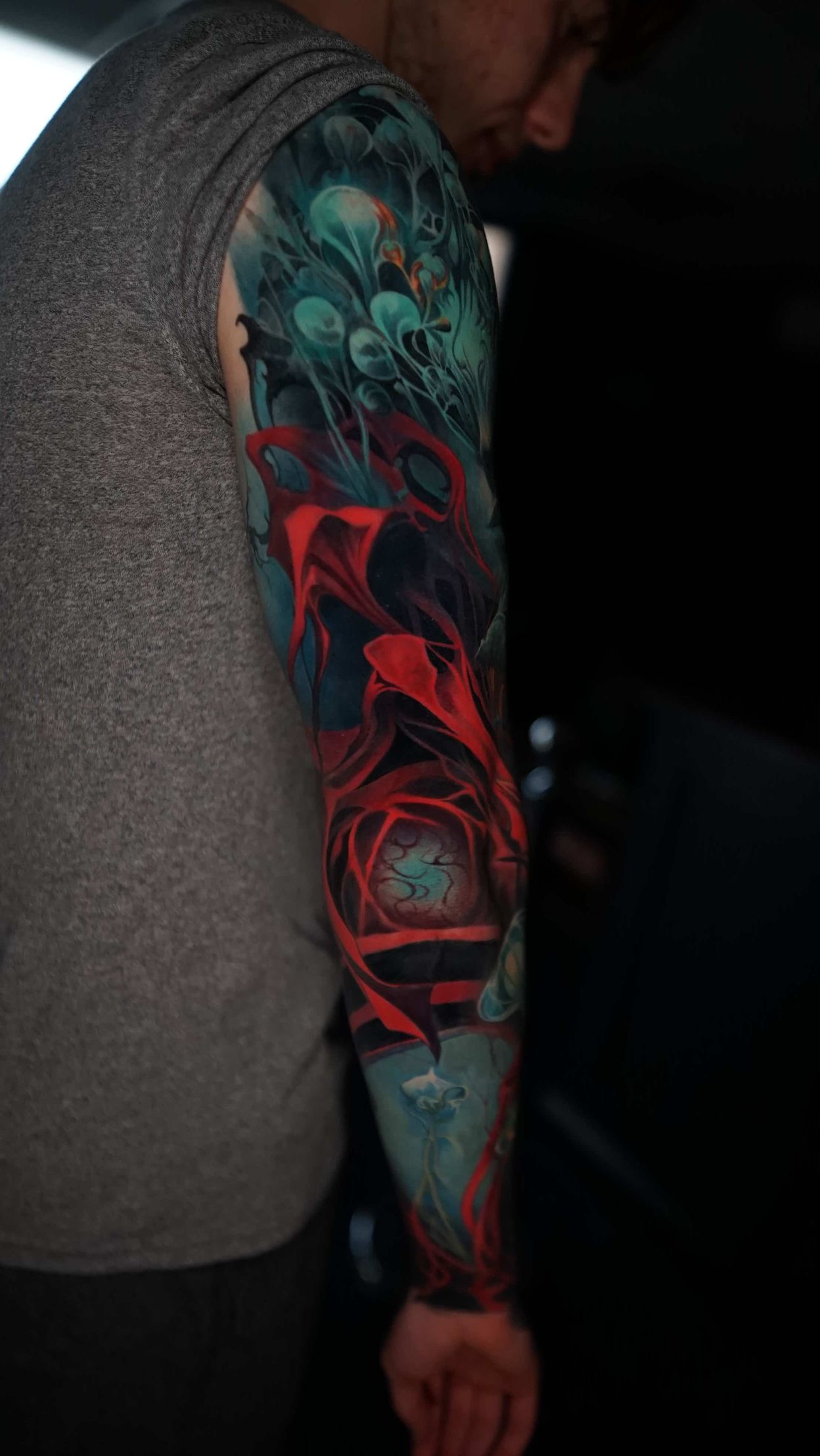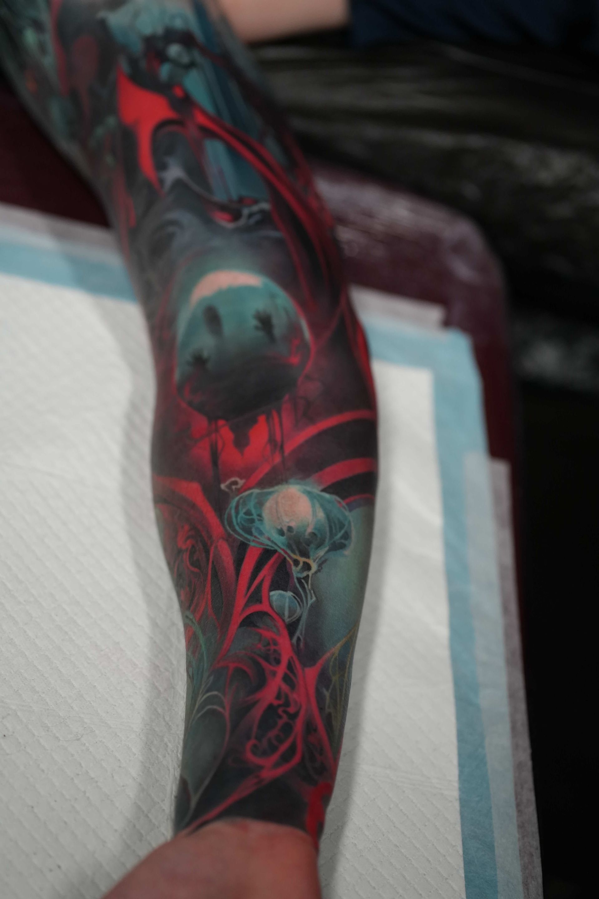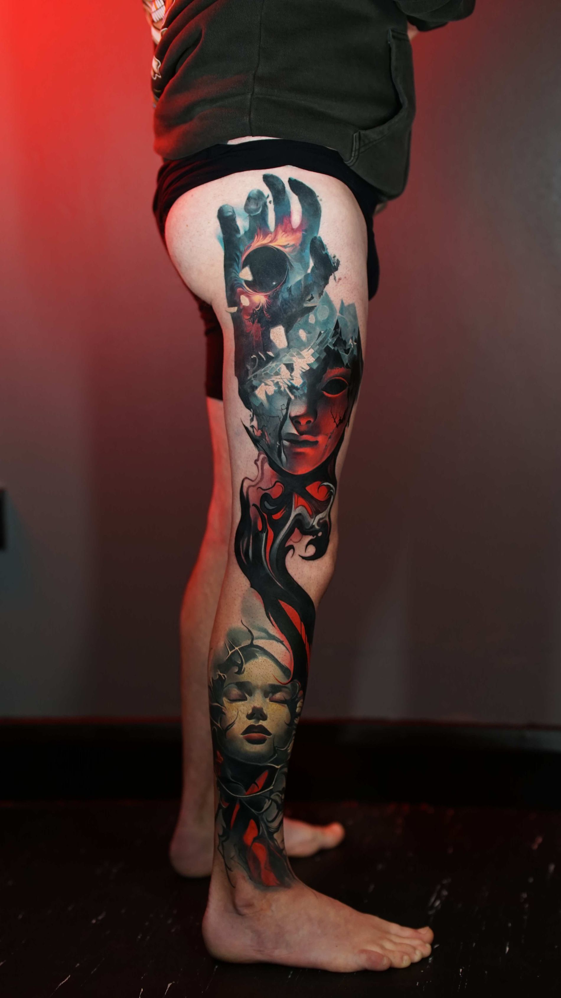 Hi, my name is Alexander Kuzmin and I am co-owner of Requiem Tattoo Shropshire. I have been tattooing for over 12 years and my speciality is my own style of surrealism. I like making art with a narrative and aim to inject a little lore into each one of my pieces. I am extremely selective of the pieces and clients I work with to ensure the best creative process and the most favourable outcome. I don't work with everyone but the people I do work with usually become lifelong friends. During your session I'm happy to chat and have a laugh or we can stay quiet and focus on our own tasks, either is fine with me as long as you're relaxed and comfortable.