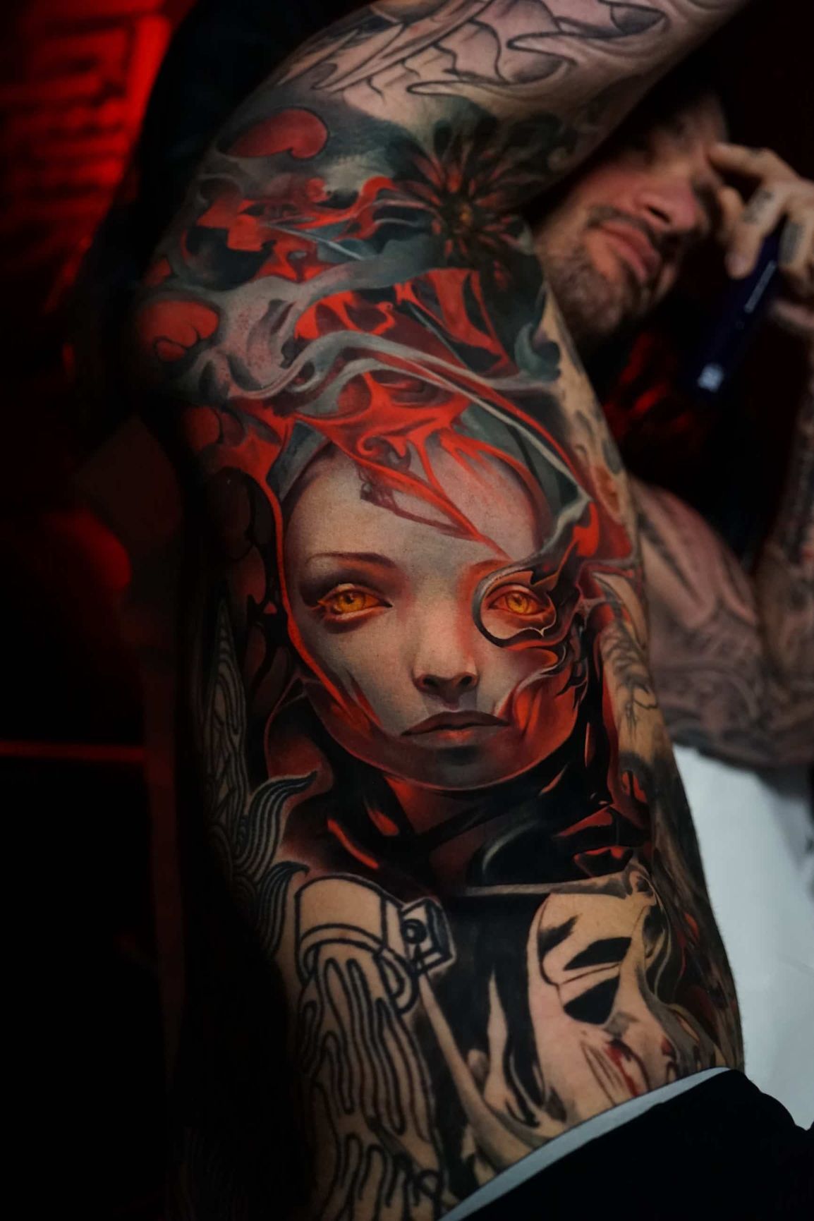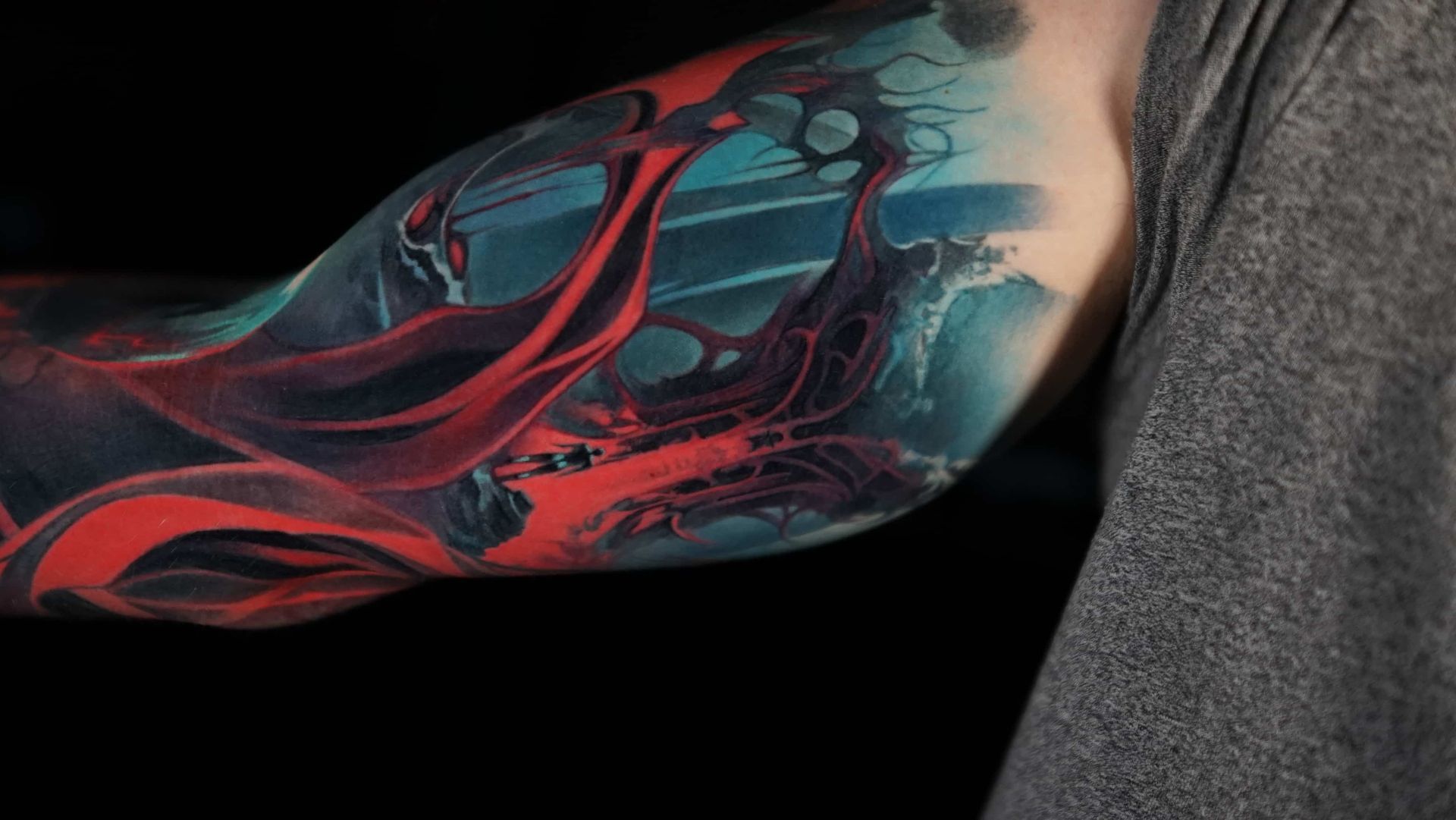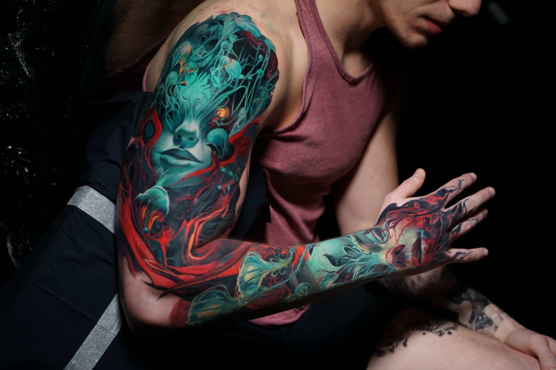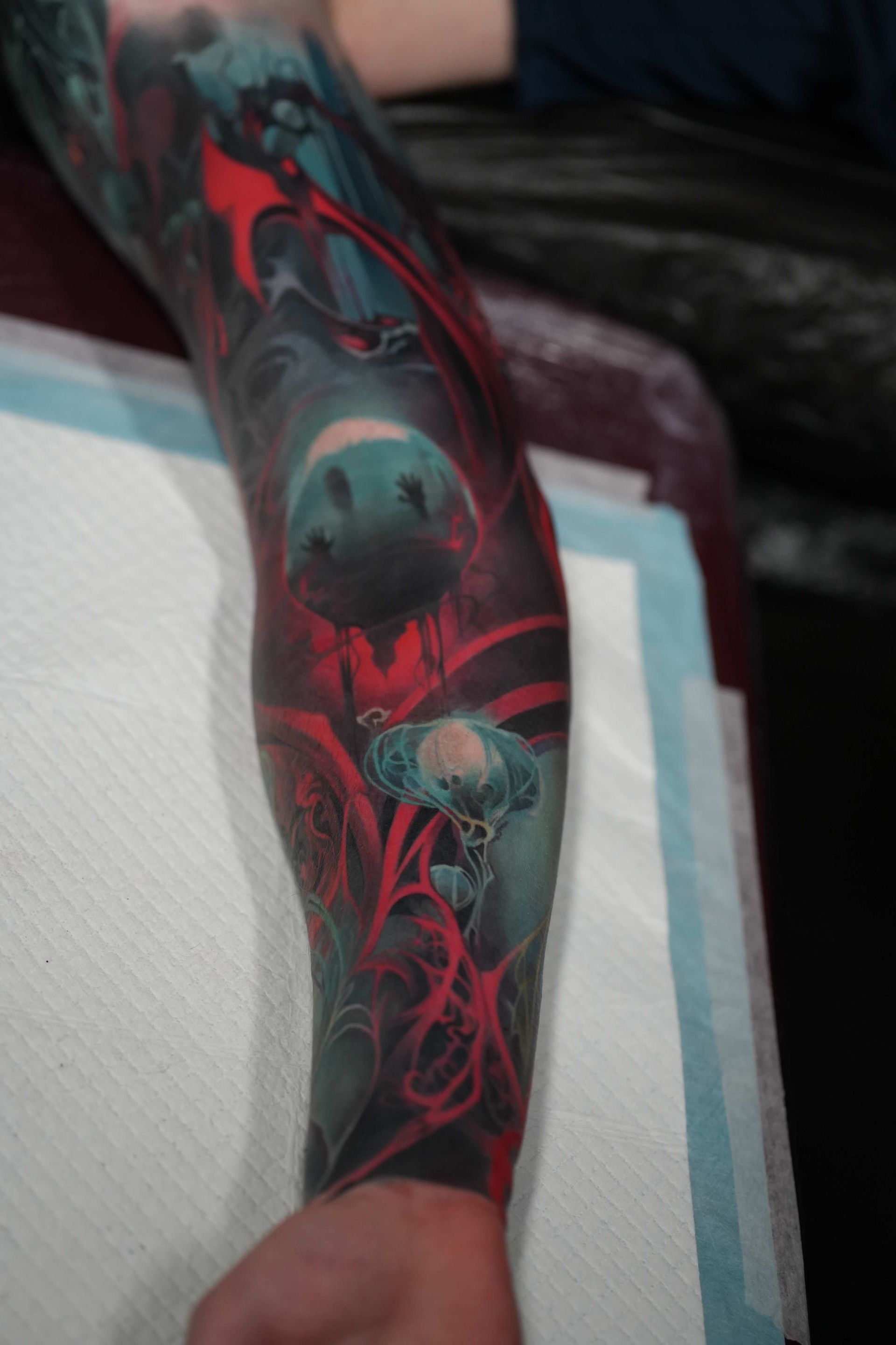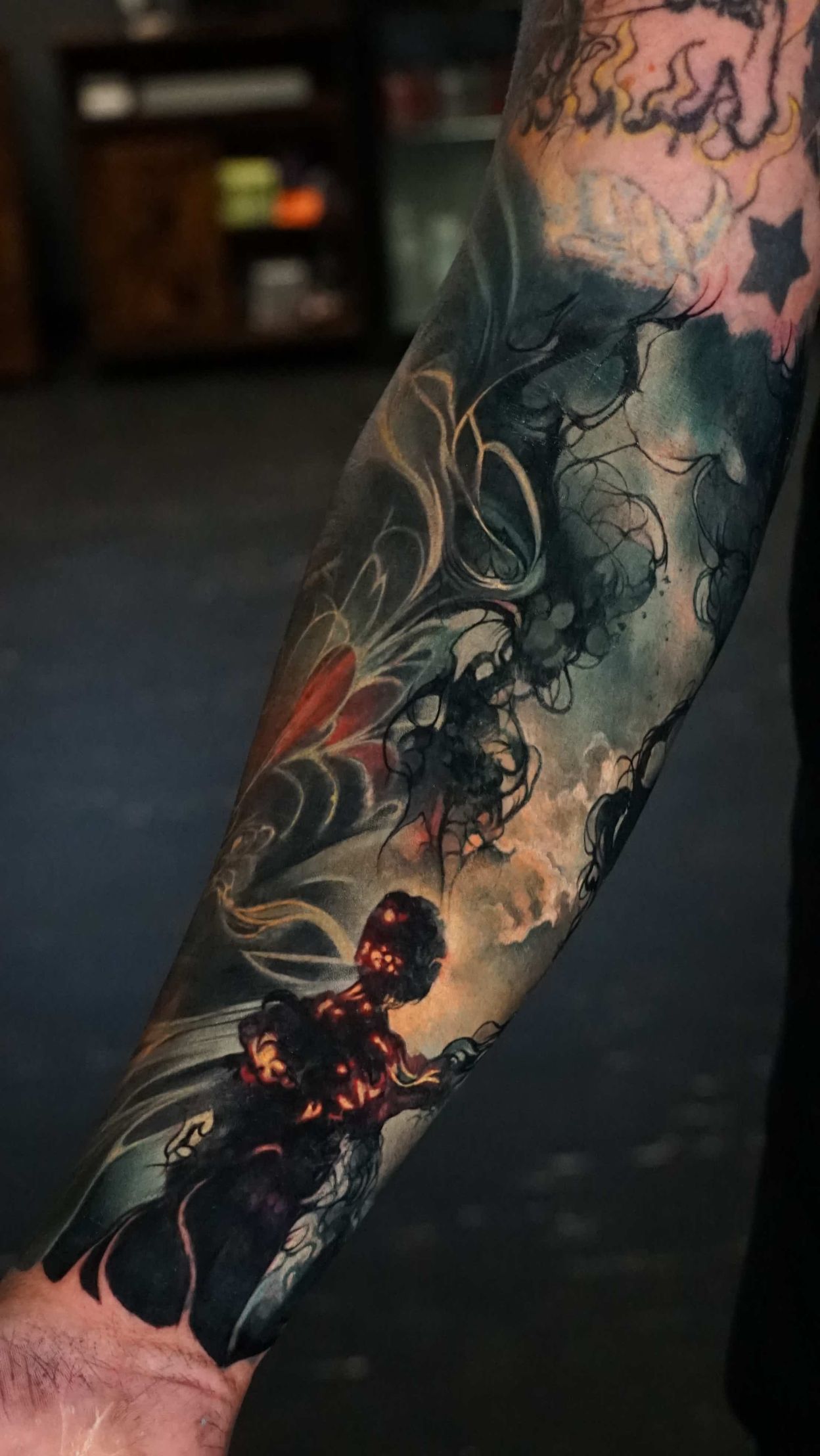 Hi, my name is Alexander Kuzmin and I am co-owner of Requiem Tattoo Shropshire. I have been tattooing for over 12 years and my speciality is my own style of surrealism. I like making art with a narrative and aim to inject a little lore into each one of my pieces. I am extremely selective of the pieces and clients I work with to ensure the best creative process and the most favourable outcome. I don't work with everyone but the people I do work with usually become lifelong friends. During your session I'm happy to chat and have a laugh or we can stay quiet and focus on our own tasks, either is fine with me as long as you're relaxed and comfortable.