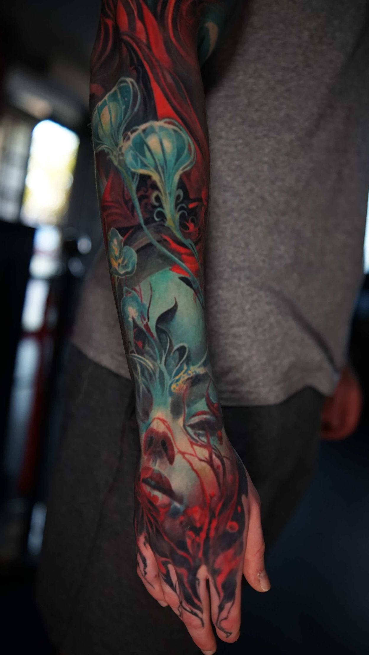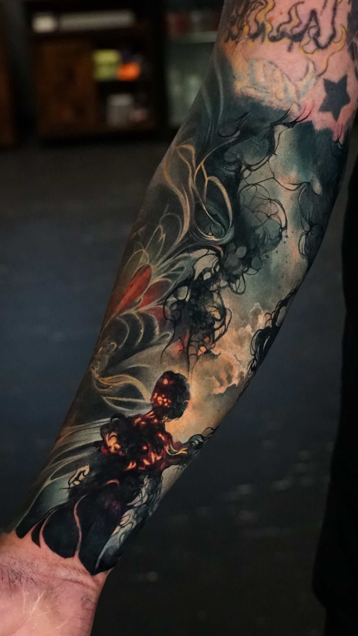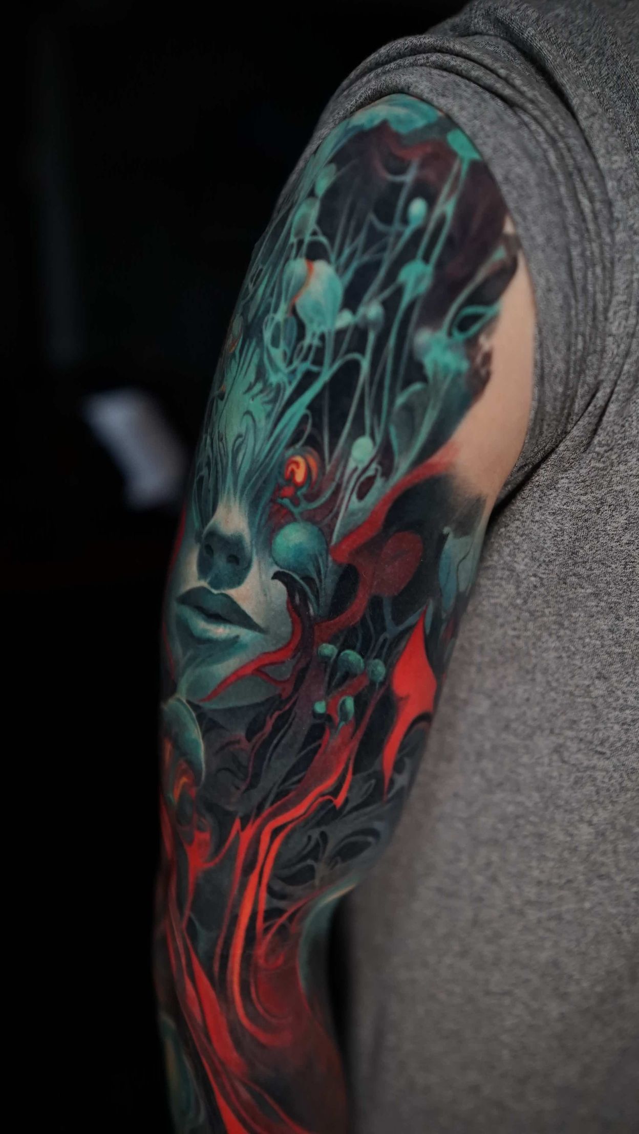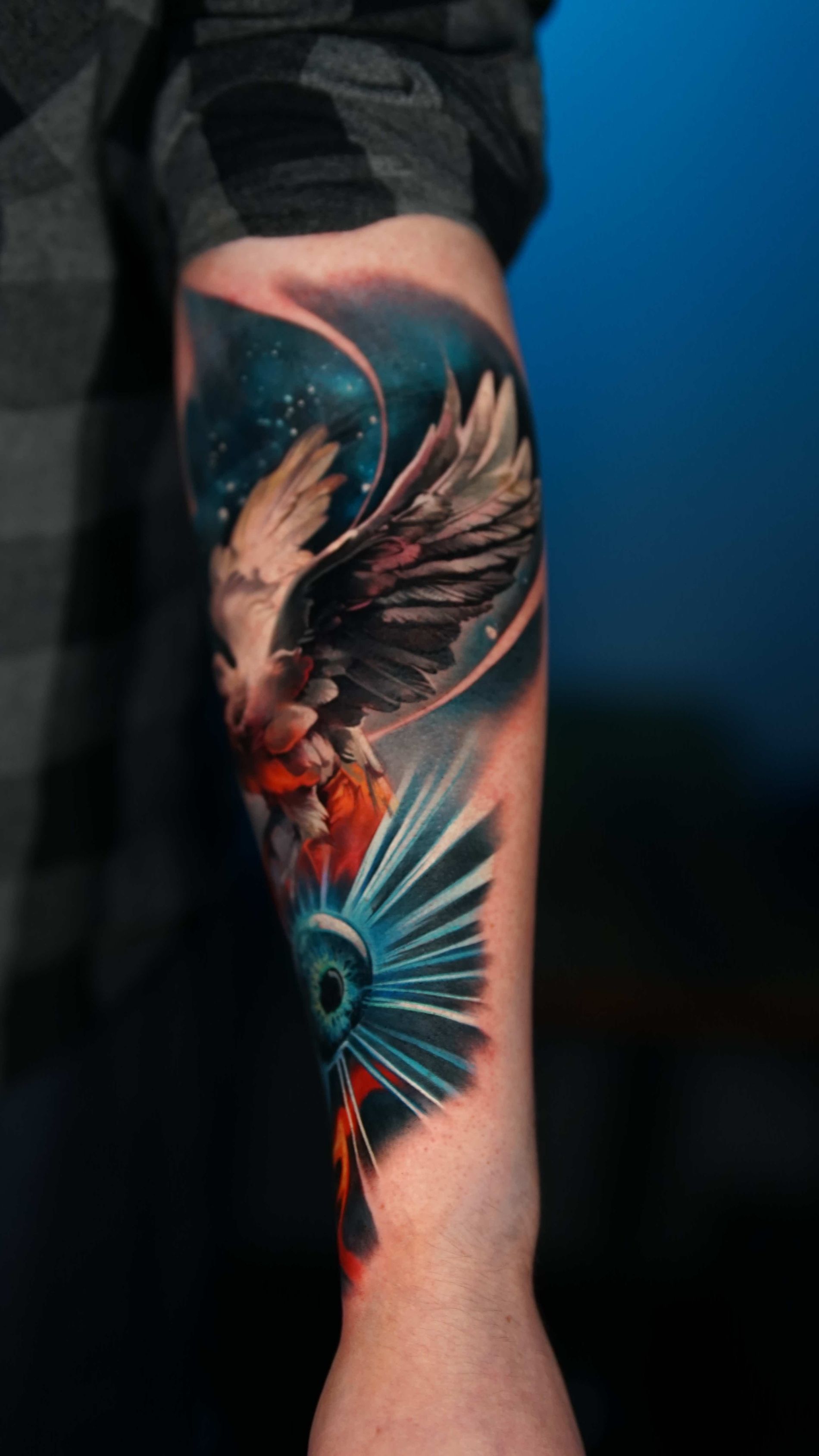 Hi, my name is Alexander Kuzmin and I am co-owner of Requiem Tattoo Shropshire. I have been tattooing for over 12 years and my speciality is my own style of surrealism. I like making art with a narrative and aim to inject a little lore into each one of my pieces. I am extremely selective of the pieces and clients I work with to ensure the best creative process and the most favourable outcome. I don't work with everyone but the people I do work with usually become lifelong friends. During your session I'm happy to chat and have a laugh or we can stay quiet and focus on our own tasks, either is fine with me as long as you're relaxed and comfortable.