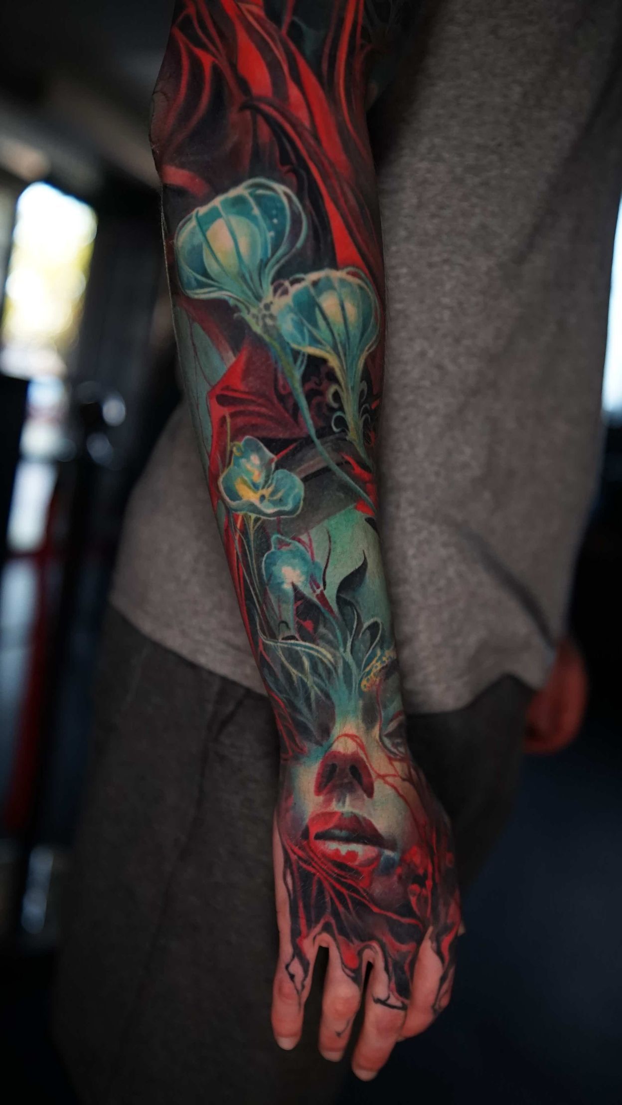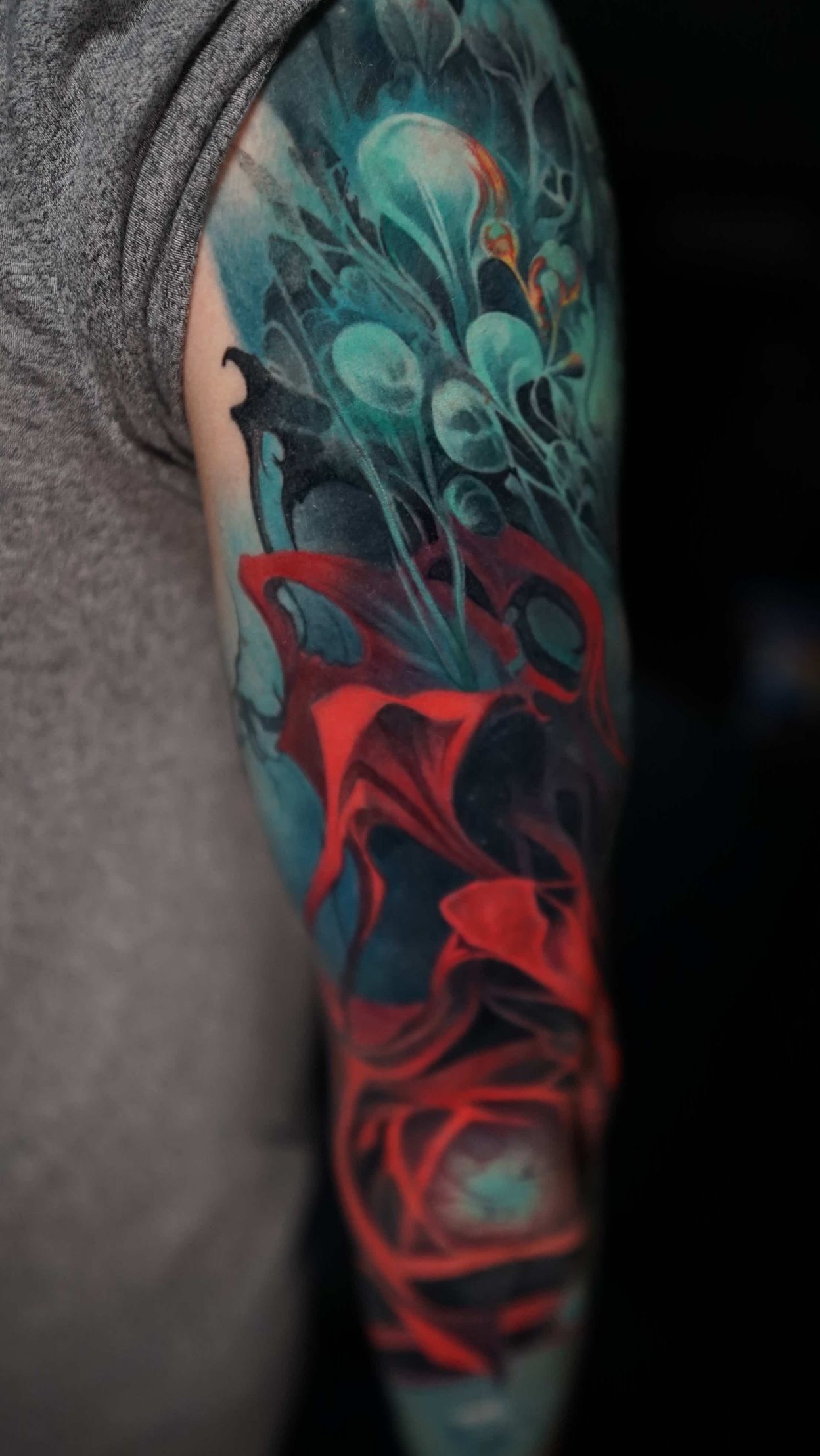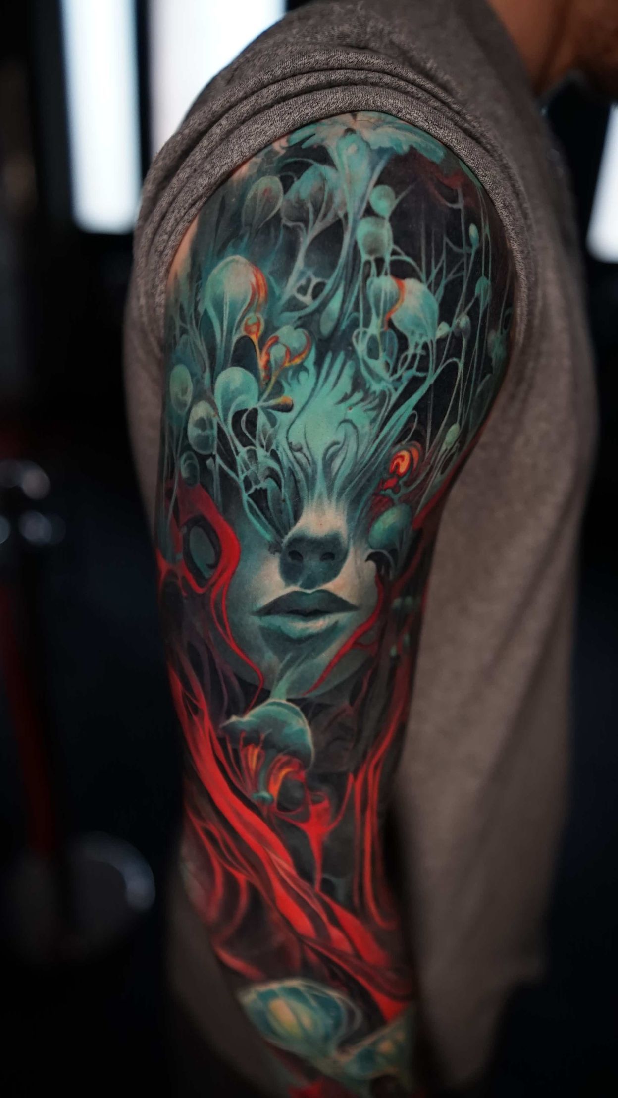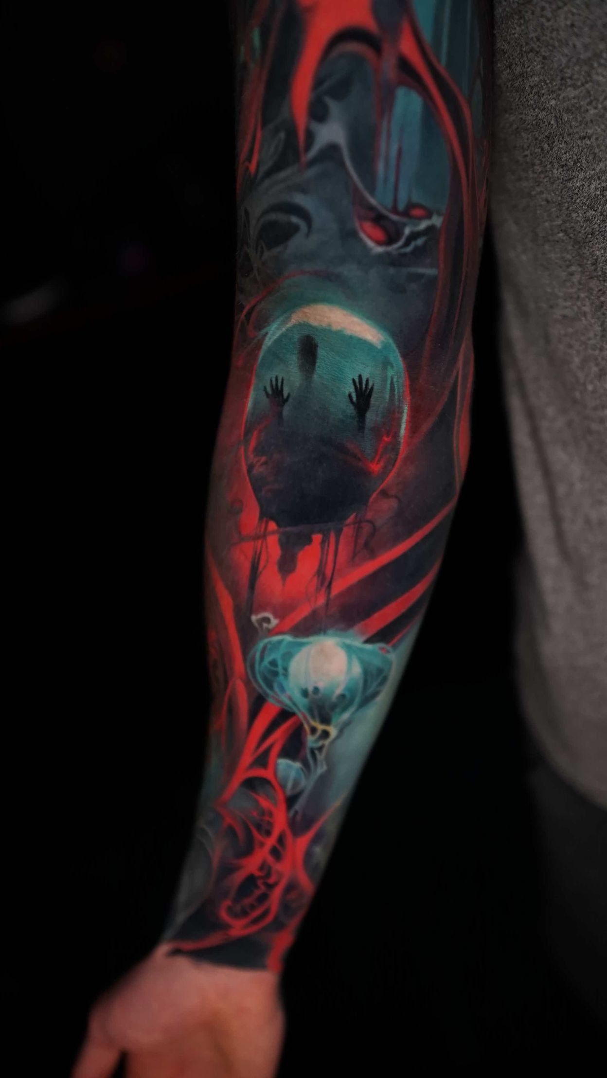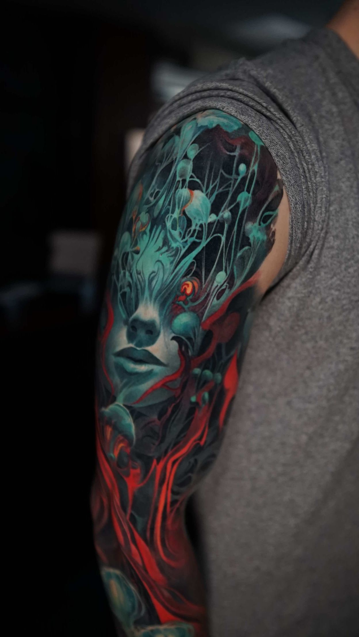 Hi, my name is Alexander Kuzmin and I am co-owner of Requiem Tattoo Shropshire. I have been tattooing for over 12 years and my speciality is my own style of surrealism. I like making art with a narrative and aim to inject a little lore into each one of my pieces. I am extremely selective of the pieces and clients I work with to ensure the best creative process and the most favourable outcome. I don't work with everyone but the people I do work with usually become lifelong friends. During your session I'm happy to chat and have a laugh or we can stay quiet and focus on our own tasks, either is fine with me as long as you're relaxed and comfortable.