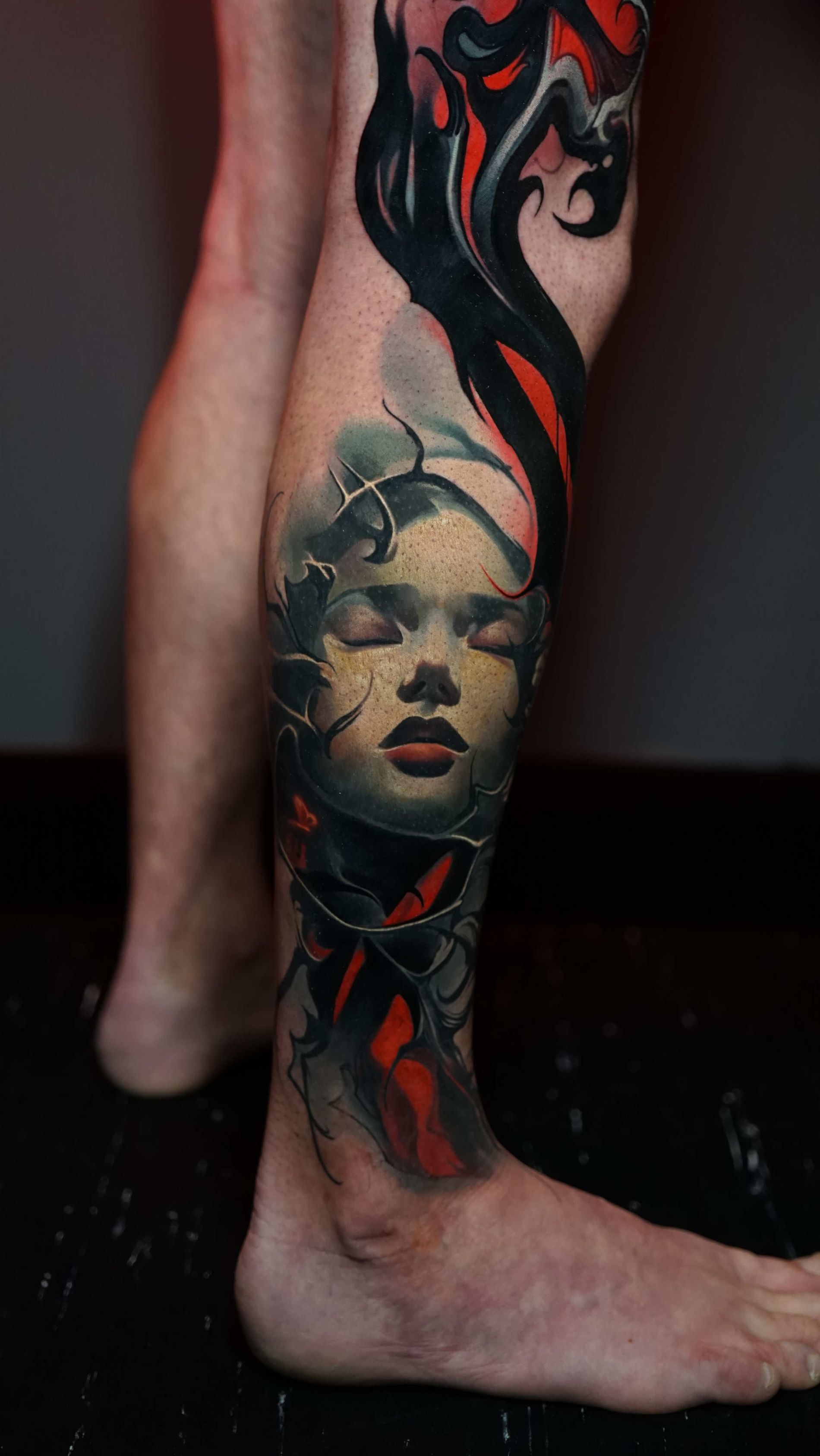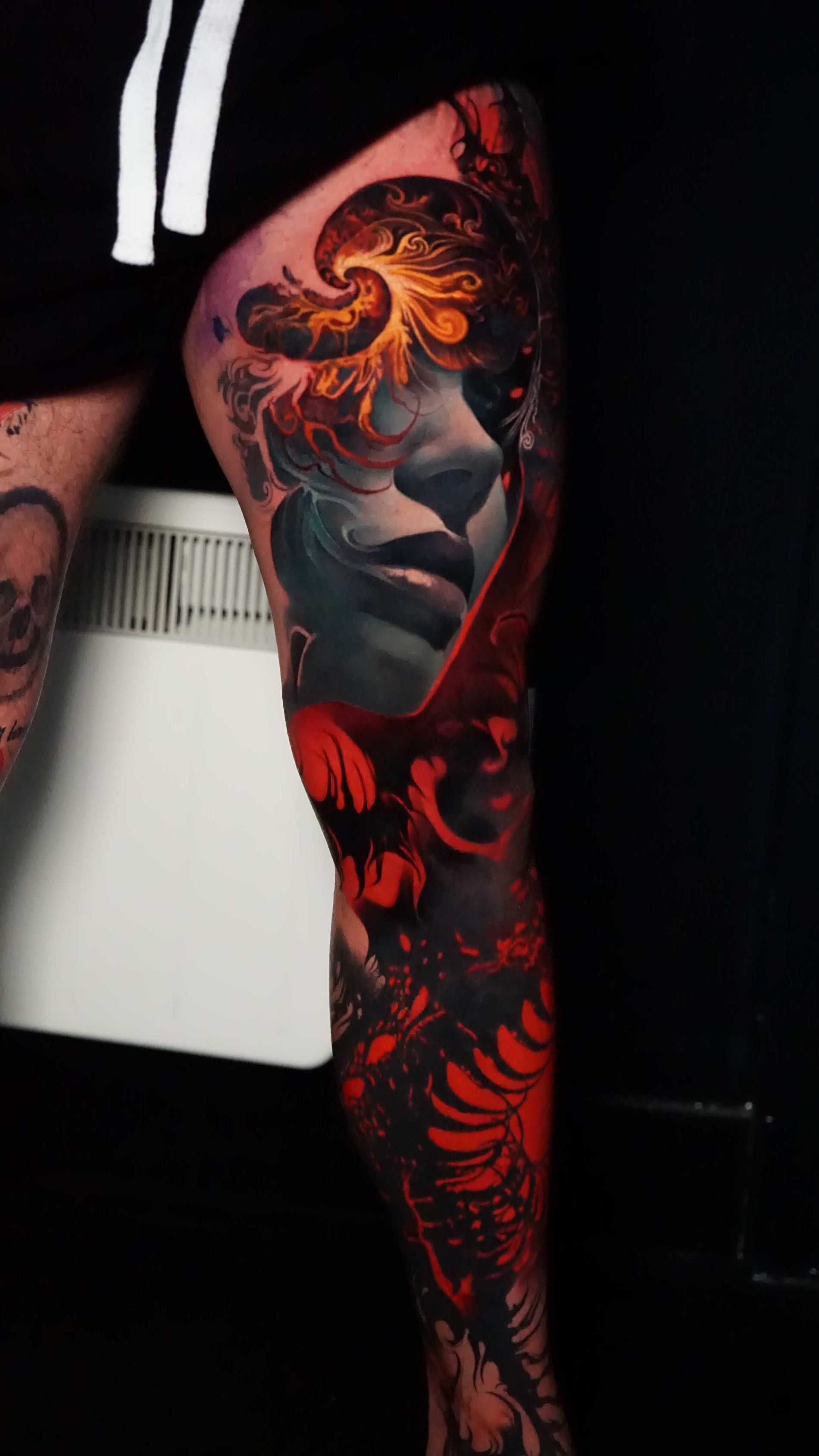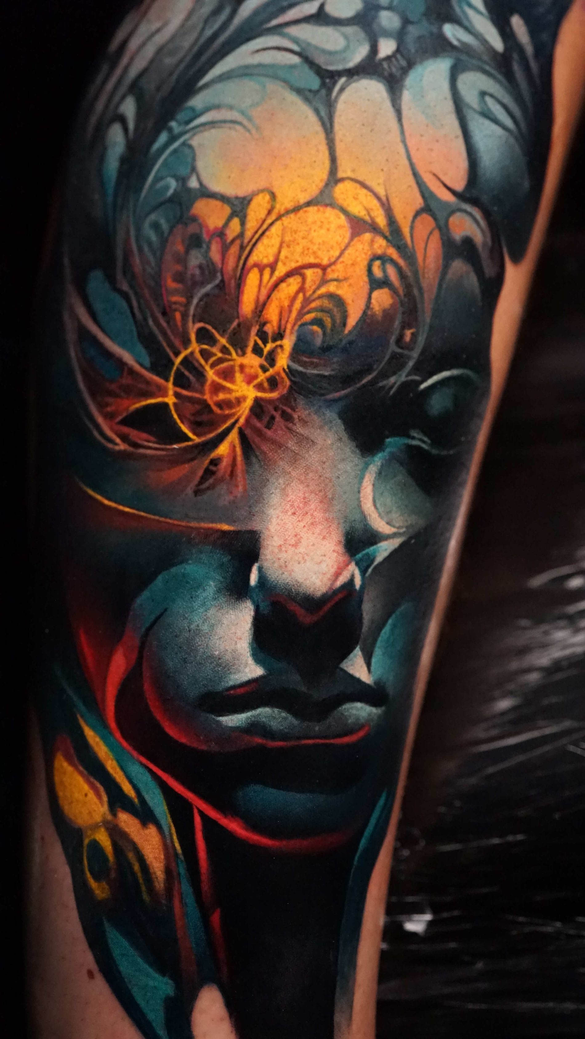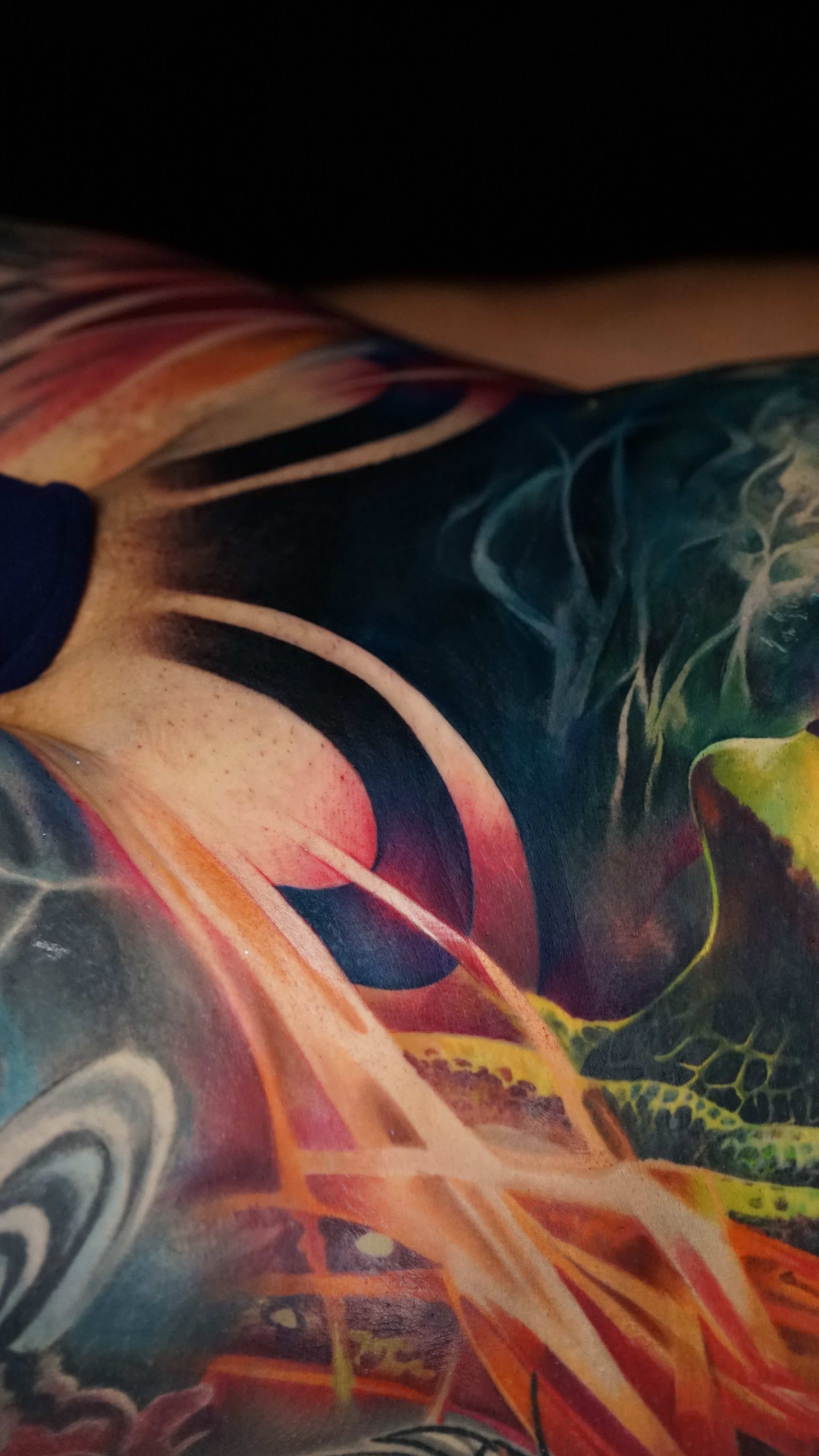 Outside of tattooing I am very enthusiastic about video games, movies, books and storytelling. I enjoy heavy music and dark humour, my wife is my best friend and I'm a proud pet dad.