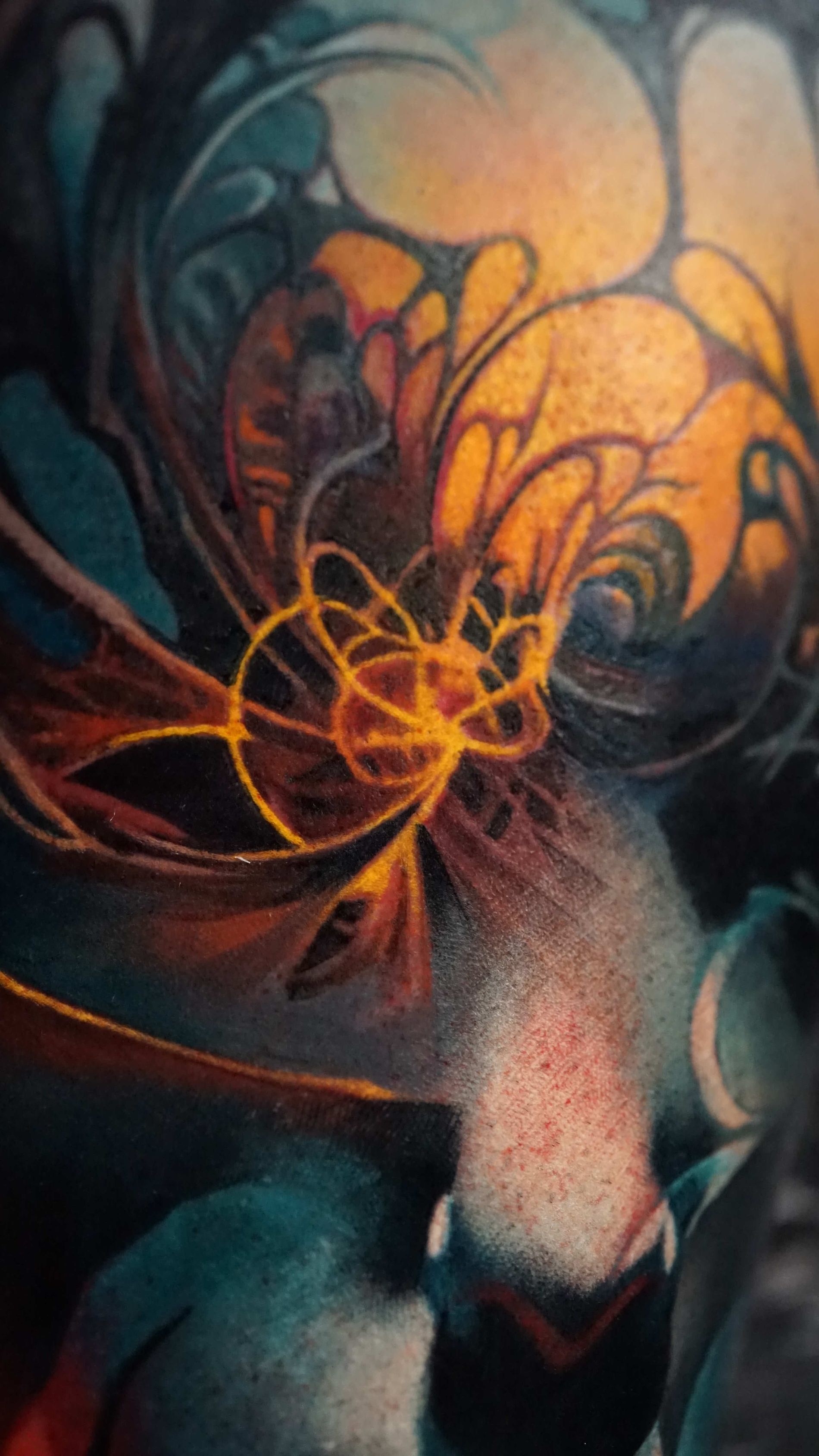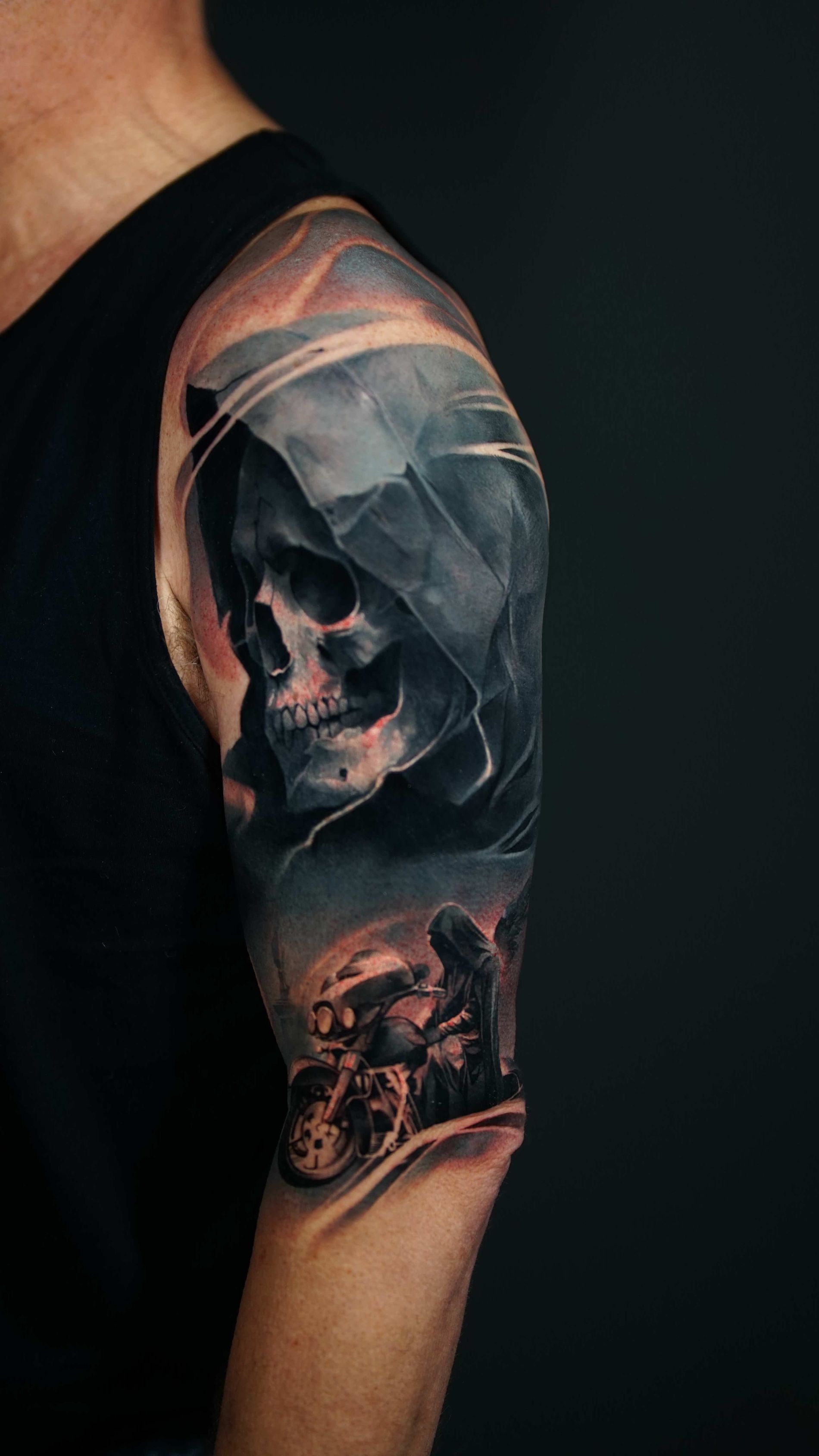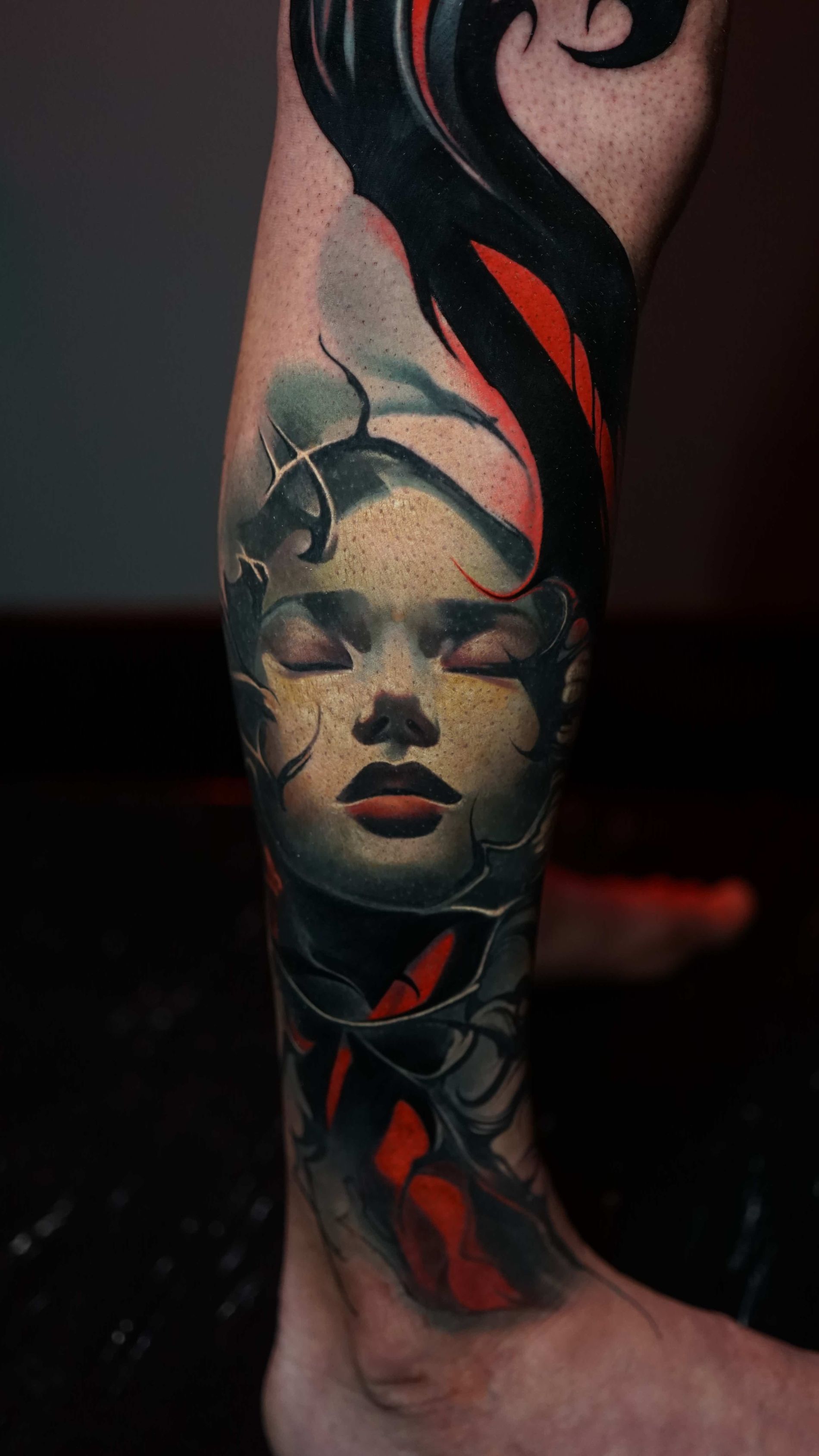Outside of tattooing I am very enthusiastic about video games, movies, books and storytelling. I enjoy heavy music and dark humour, my wife is my best friend and I'm a proud pet dad.