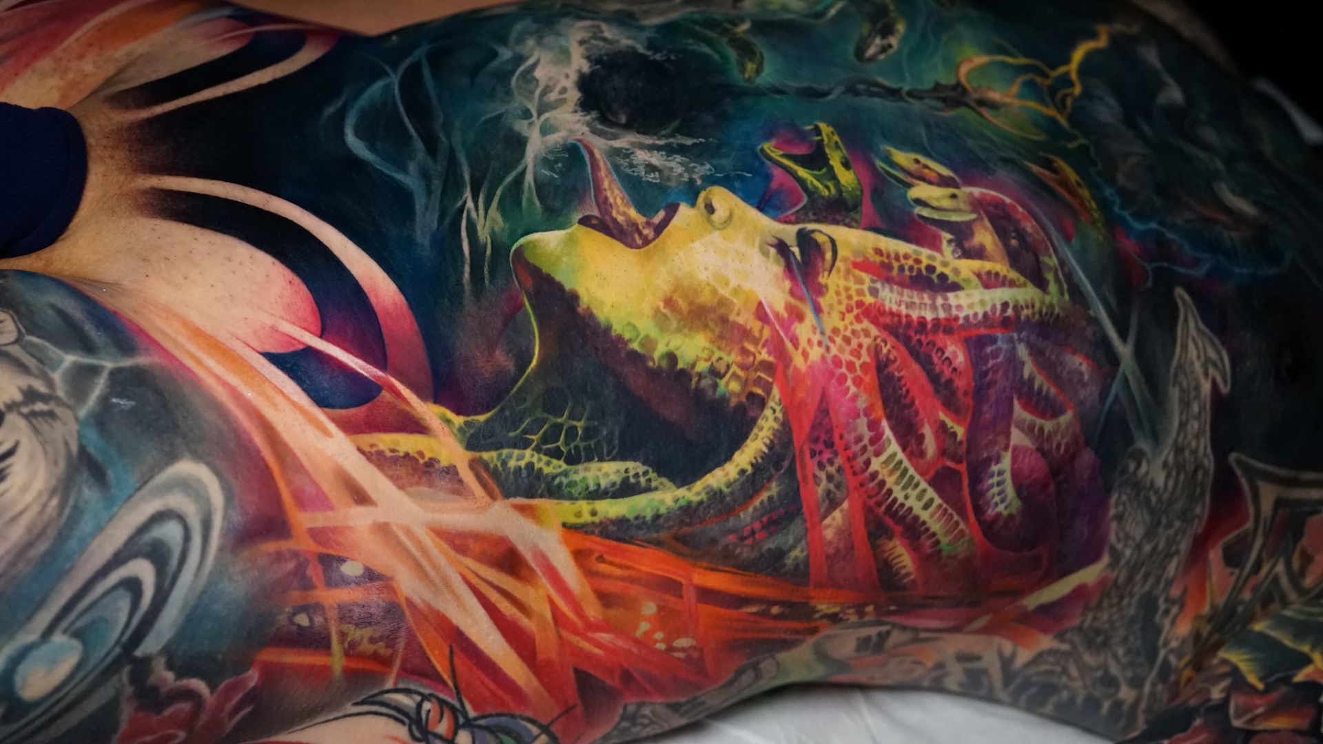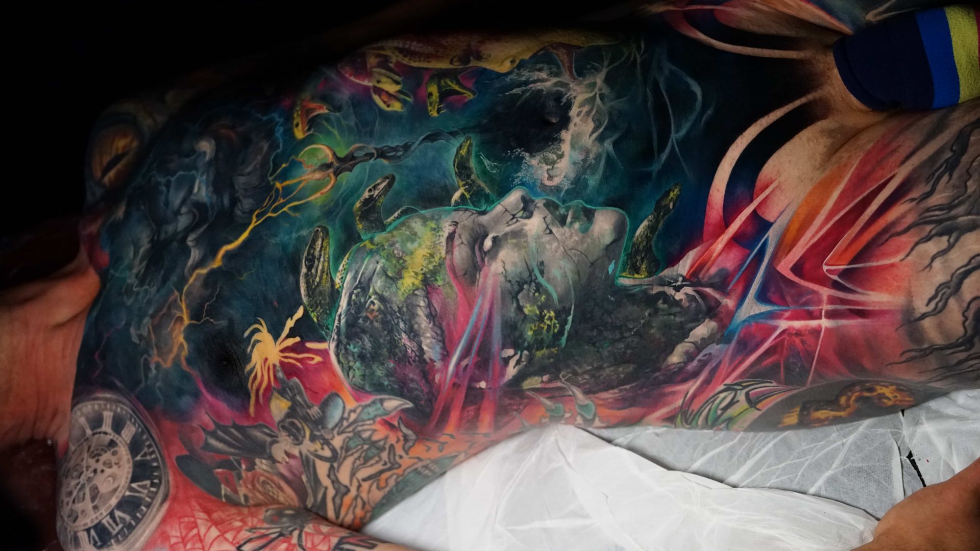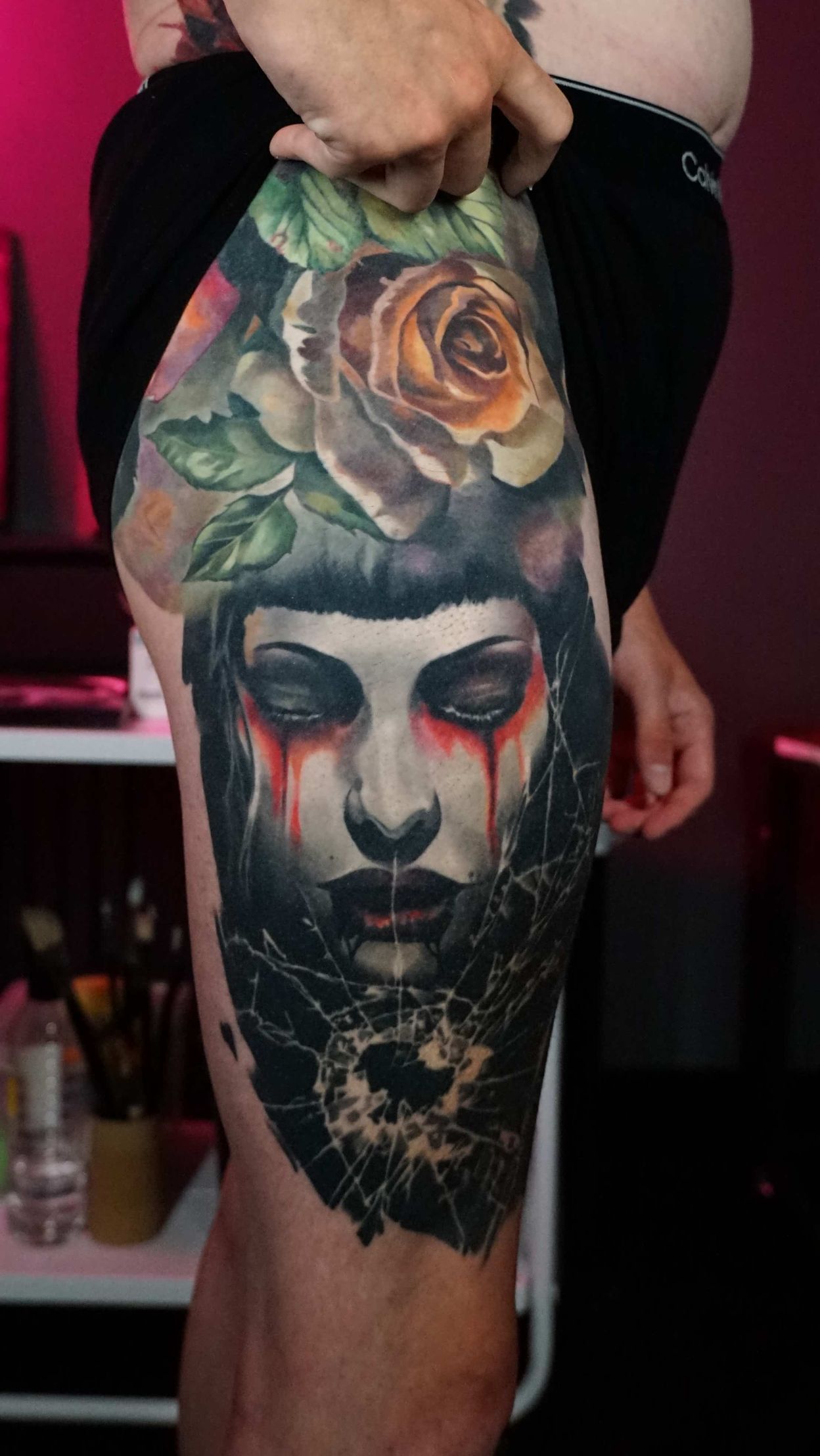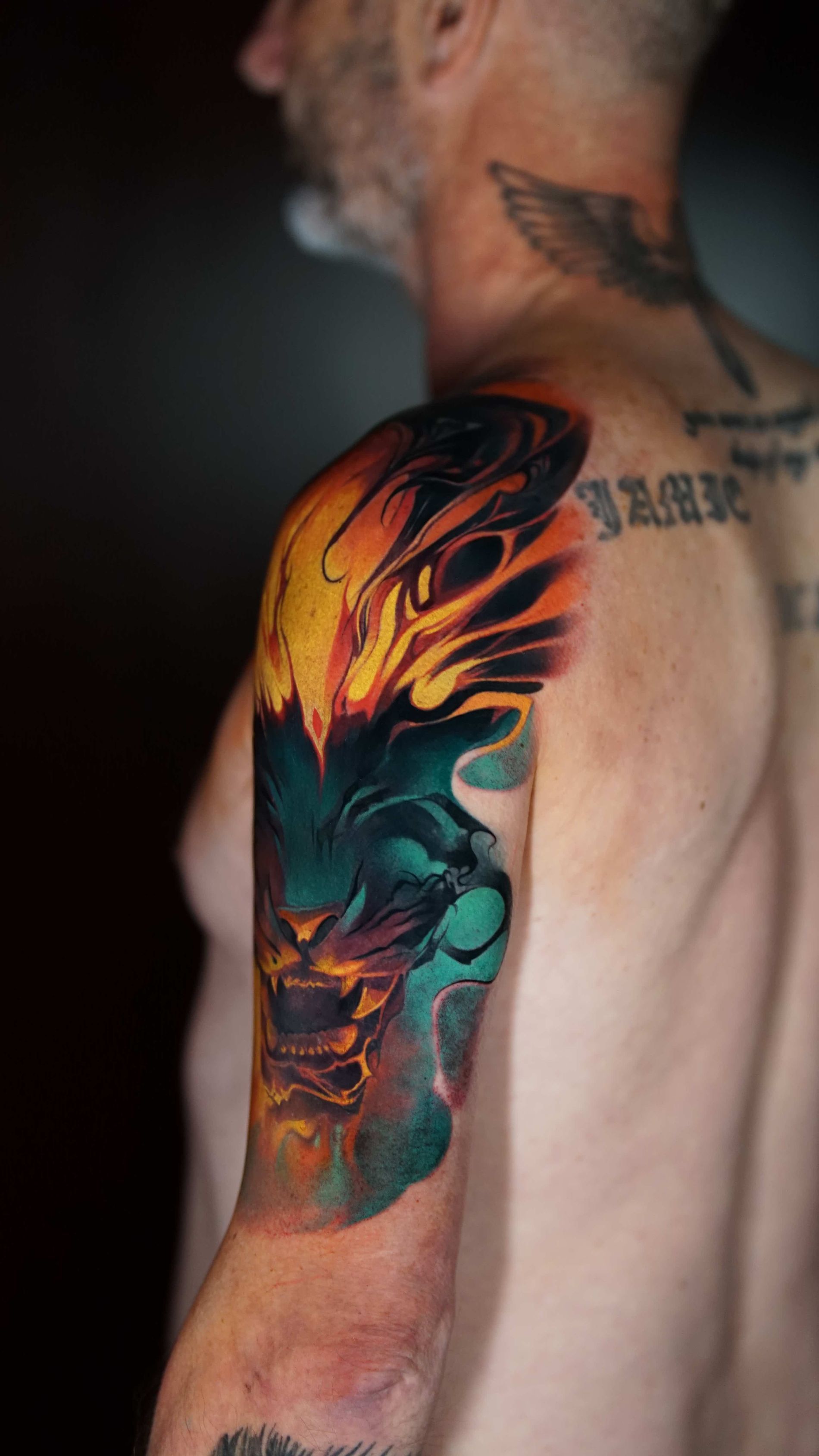 Outside of tattooing I am very enthusiastic about video games, movies, books and storytelling. I enjoy heavy music and dark humour, my wife is my best friend and I'm a proud pet dad.